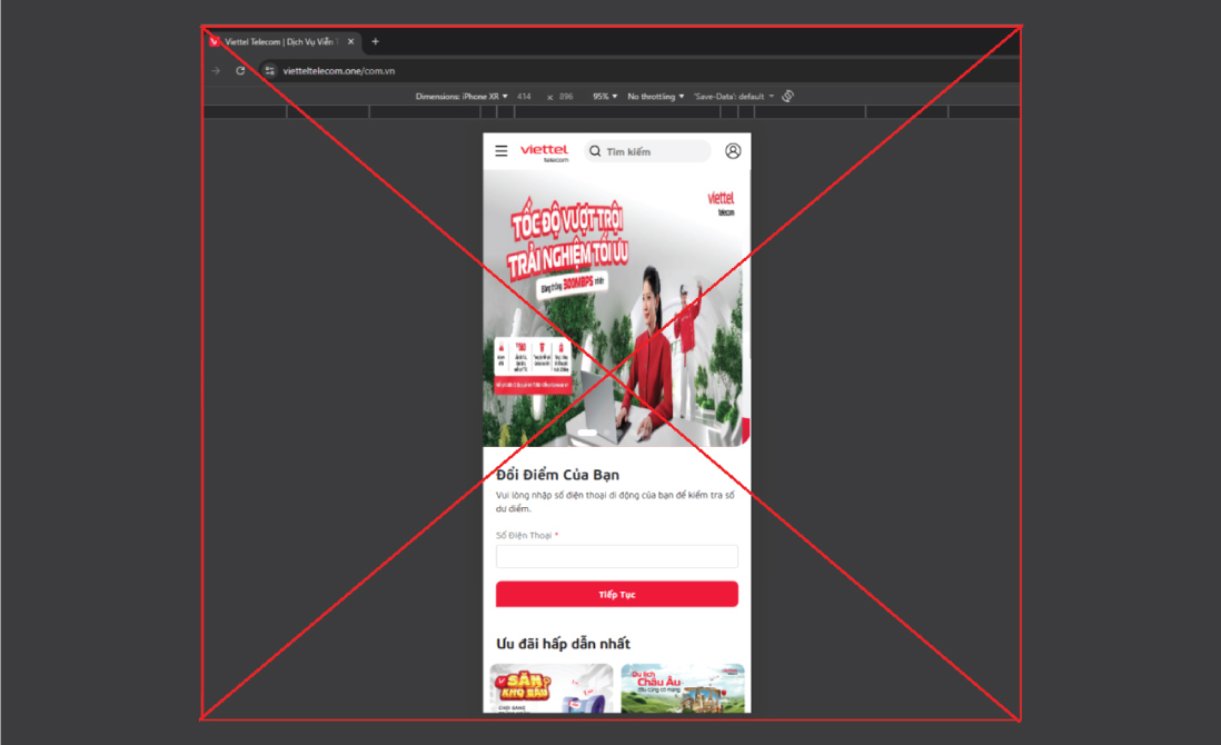 Thời gian gần đây, xuất hiện nhiều tin nhắn SMS giả mạo thương hiệu của Viettel với các nội dung lừa đảo khác nhau như thông báo điểm thưởng hết hạn, hướng dẫn đổi quà, trúng thưởng… kèm hướng dẫn đến trang web lừa đảo và yêu cầu người dùng nhập các thông tin cá nhân, số thẻ tín dụng ngân hàng, mã số bí mật (CVV) từ đó thực hiện các thủ đoạn rút tiền, chiếm đoạt tài khoản thẻ ngân hàng.