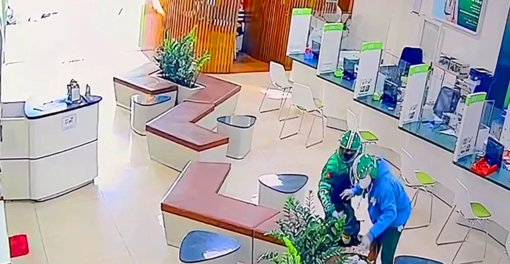Như Báo Người Lao Động đã thông tin, khoảng 16 giờ ngày 19-1, có hai đối tượng nam giới mặc trang phục áo khoác của hãng Grab, đội mũ bảo hiểm màu xanh Grab vào trong khu vực các quầy giao dịch của ngân hàng TMCP Vietcombank – Phòng giao dịch Trà Bá.