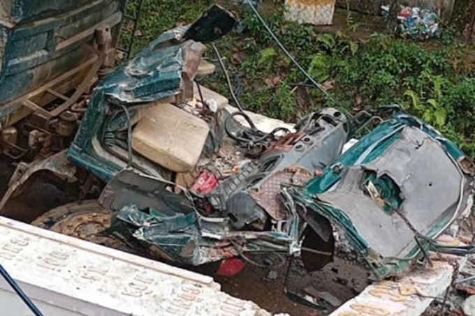 Phần cabin xe ben biến dạng sau tai nạn. Ảnh: Thường Nhật