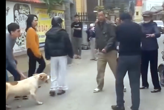 Khi sự việc diễn ra, một thanh niên mặc áo xám đứng gần đó đã xua đuổi rồi đẩy một con chó có kích thước khá lớn về phía hai người đang ẩu đả. Tuy nhiên, trái với ý đồ ban đầu, con chó bất ngờ quay sang cắn một phụ nữ có mặt tại hiện trường, khiến nạn nhân hoảng sợ và kêu cứu.
