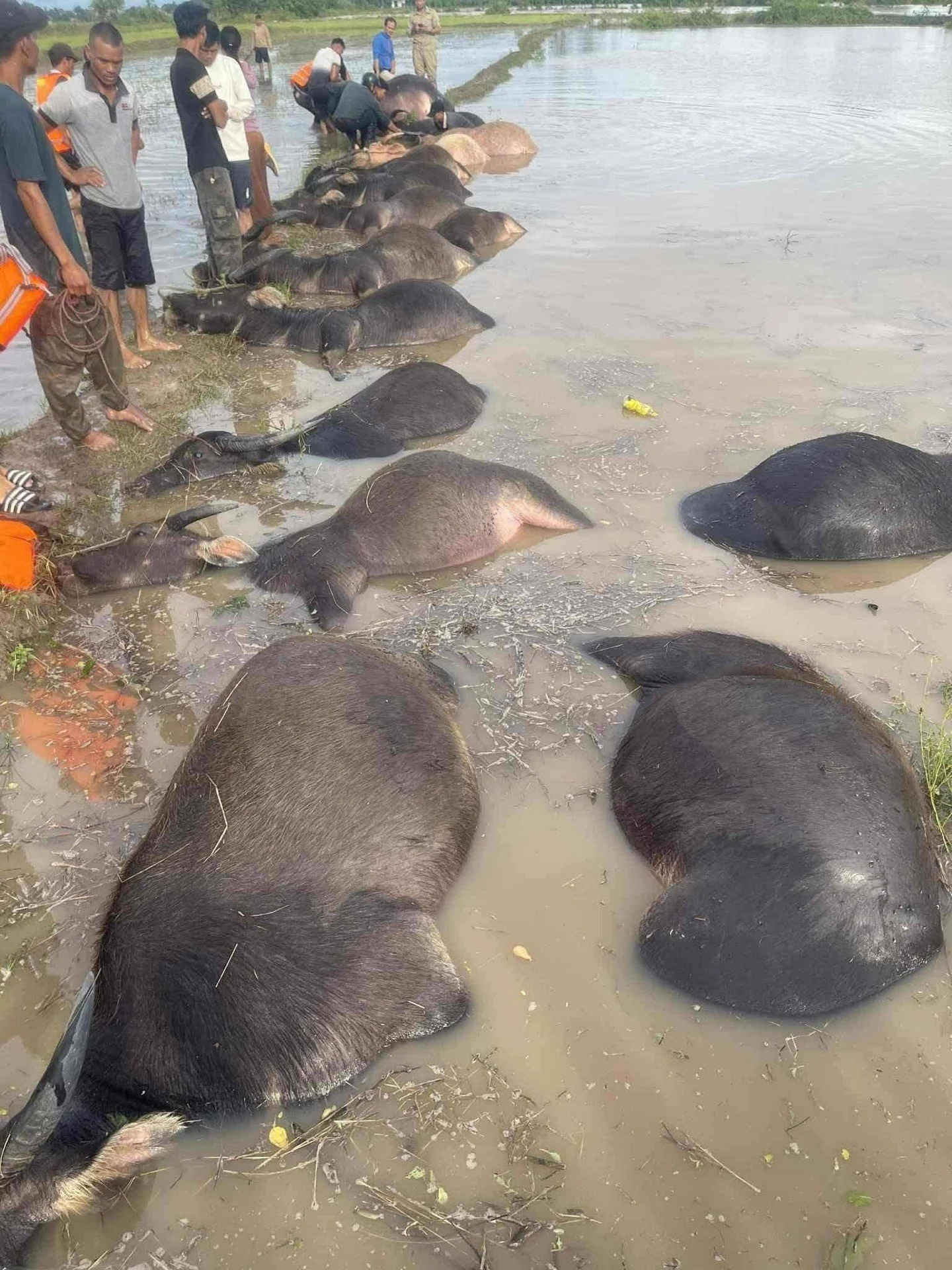 23 con trâu của 7 hộ dân chết do ngạt nước.